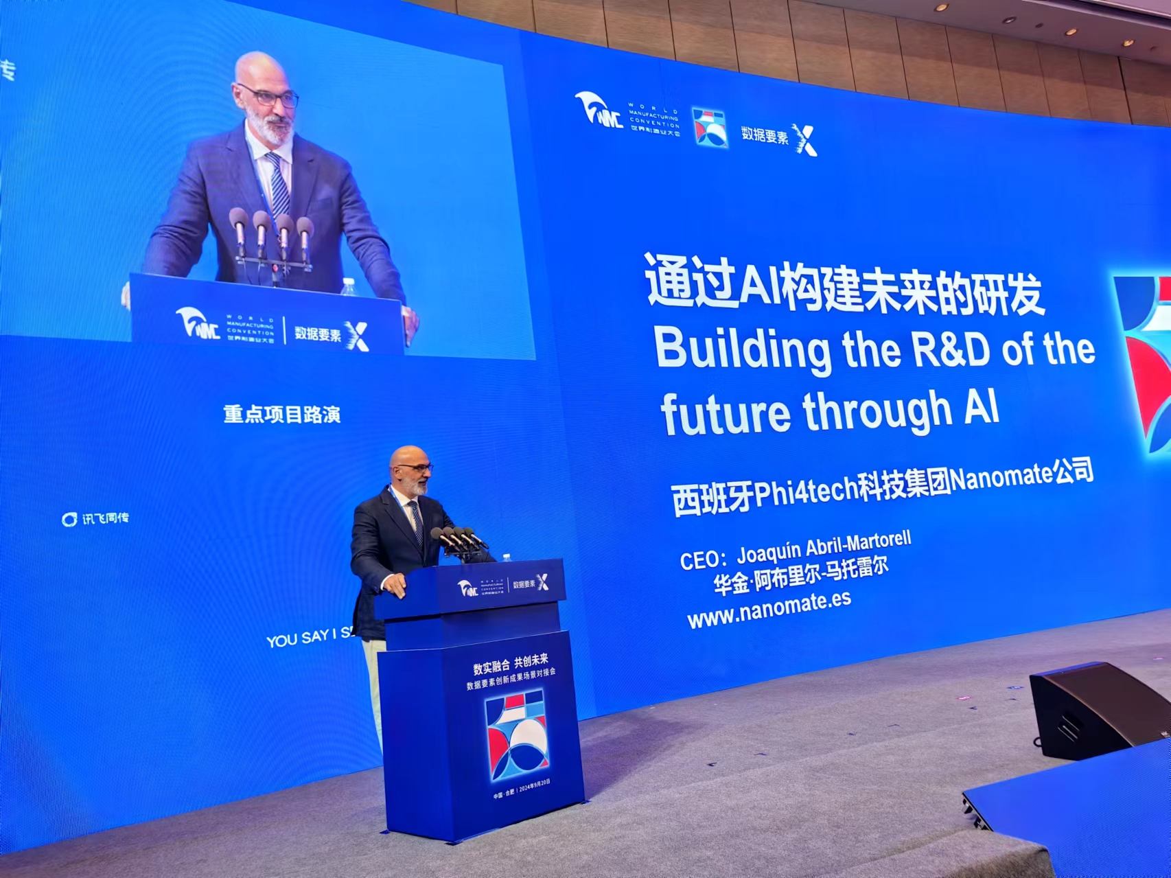 我集团招引的西班牙Phi4Tech科技集团作为唯一一家海外企业参加重点项目路演,首席执行官华金·阿布里尔-马托雷尔发表了“通过AI构建未来研发”的演讲,介绍了旗下品牌Nanomate通过DATA×AI 数智融合,加速新材料产业研发的颠覆式创新技术和商业模式,与会嘉宾反响热烈。